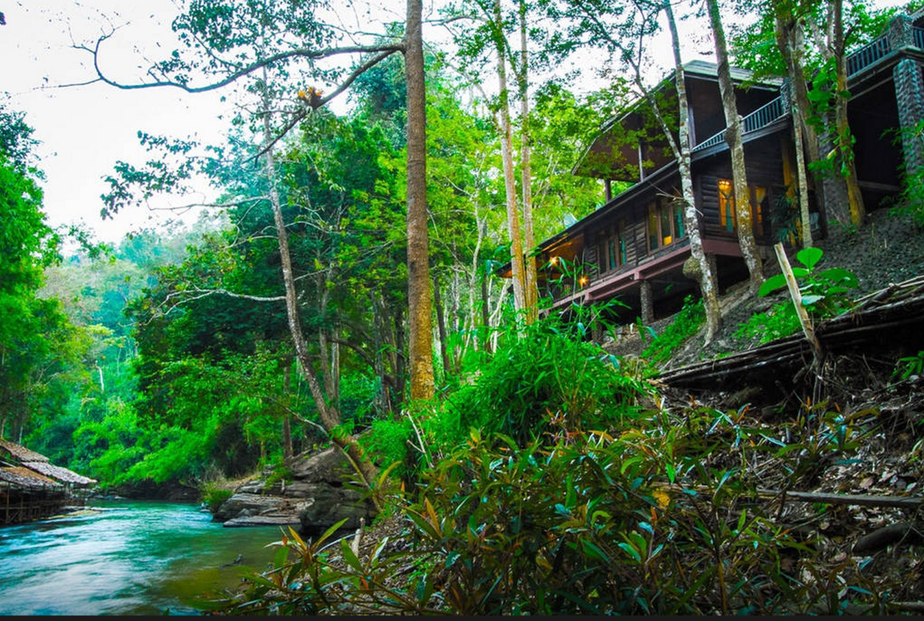 Located in Thailand, this bungalow is surrounded by trees and an elephant camp. You heard right, an elephant camp, so you can watch and interact with them all you want.